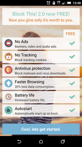 Block This is a FREE and Open Source ad blocker for Android that works in all apps and browsers! It also stops common malware, increases browsing speed and reduces mobile data consumption.